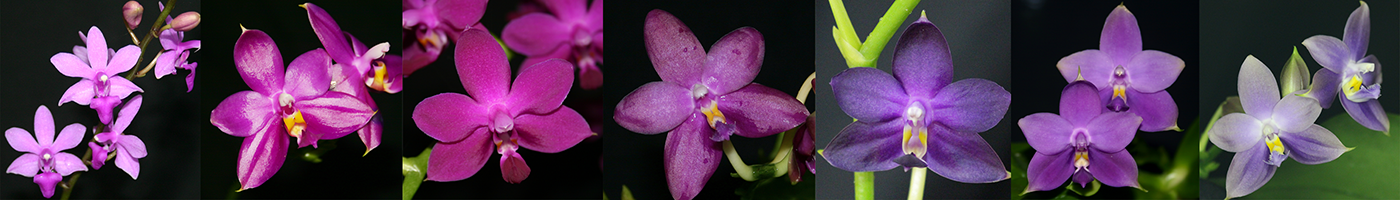 Pigments called Anythocyanin's in Phalaenopsis produce a range of colors from light pink, to lavender, to magenta, to purple, to violet.  There are 3 different Anthocyanin's that Phalaenopsis can naturally produce. For the purposes of discussion, we will call them A, B & C.   A & B are the most common and they produce the pink's to magenta color's.  Anthocyanin C produces the violet color that we call coerulea.